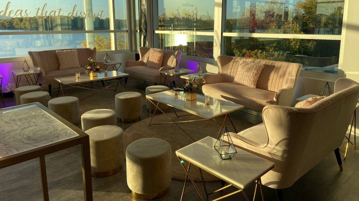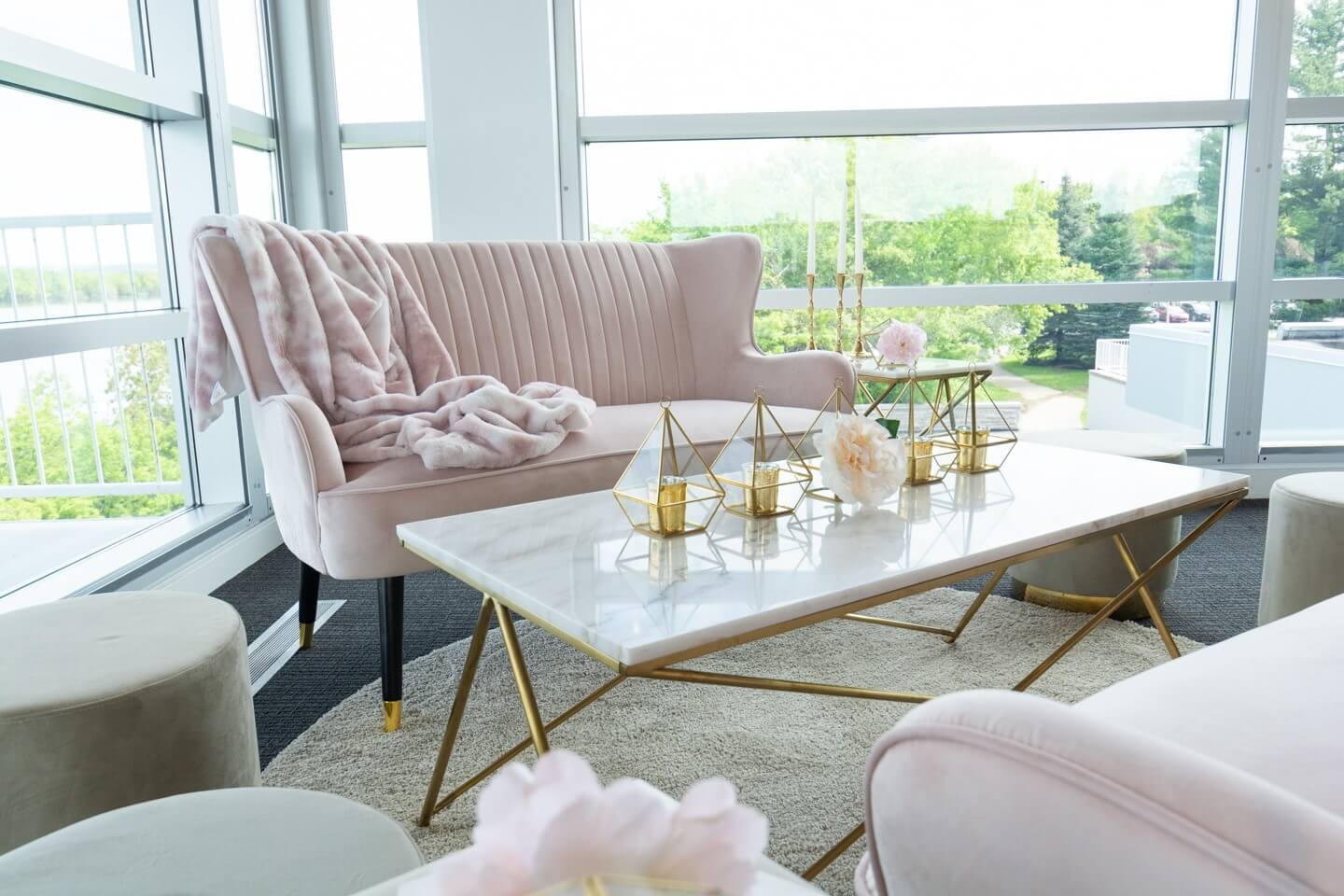 From sleek sofas and sculptural daybeds to charming footstools and accents in grey, brown, or blush pink—this collection plays well in both classic and contemporary settings. Use it to soften corporate environments or bring a touch of editorial polish to social events.